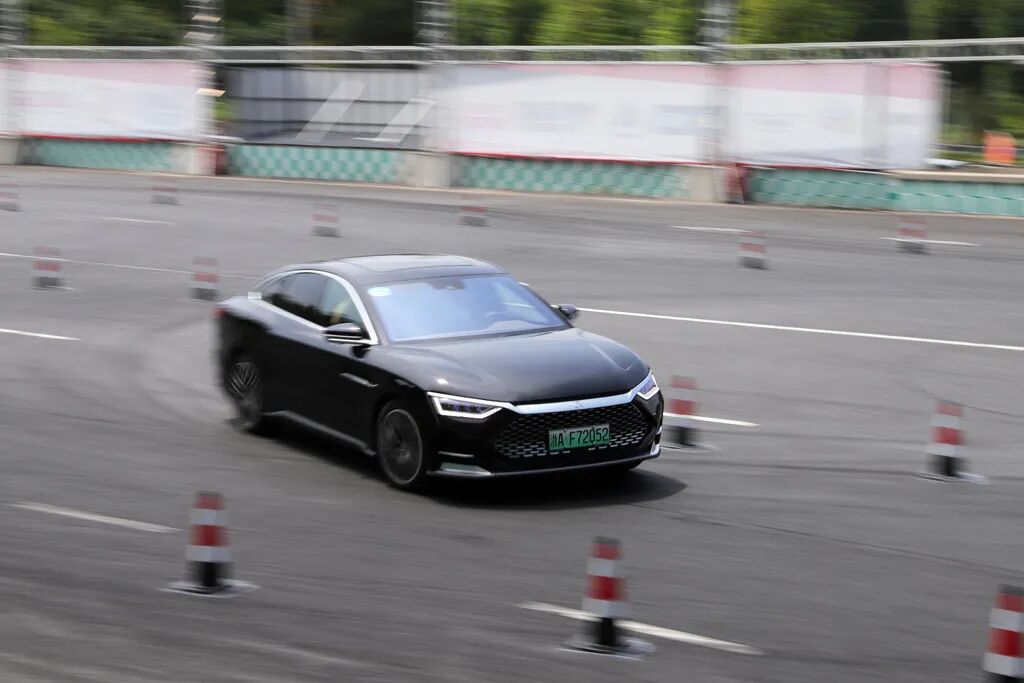 汉DM悬架调校明显偏向商务,其实以比亚迪目前的功力,完全能以增加汉DM悬架弹性元件劲度系数为基础,打造出回弹迅速,路感清晰、余震处理干净的所谓“德味”悬架,这样做固然能让车辆在绕桩项目中有更好的姿态,但比亚迪明显更想将汉DM打造得更有商务范。