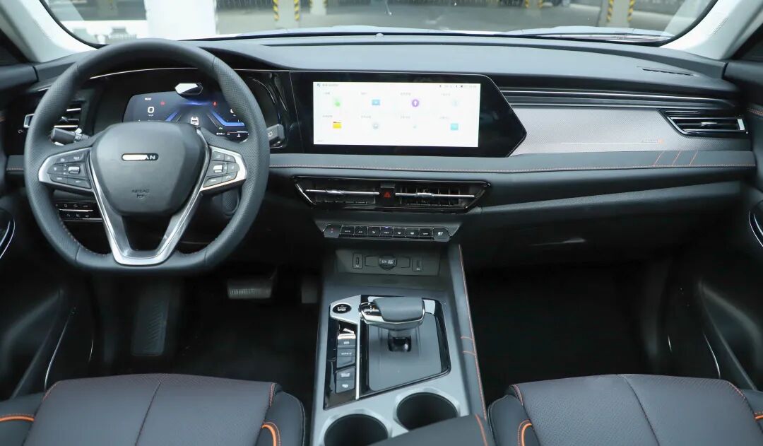 内饰方面的变化同样明显,云湖阔境环抱式座舱氛围在营造高级感方面很有优势,倒梯形样式的中控区域错落有致,贯穿左右的橙色缝线带来了不错的精致感。此外,物理按钮区域向驾驶员一侧倾斜,使用时更加符合人体工程学。