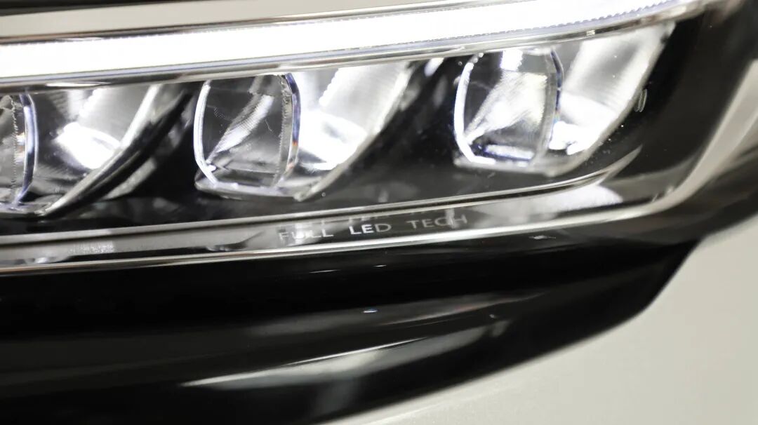 耀阳冰晶LED分体式灯组同样是新车的一大亮点,上方区域为日行转向灯组,修长的造型十分犀利,下方则是远近光灯组,且全系配备的是LED光源。中高配车型还带有自动大灯功能,远光照射距离可达160米。