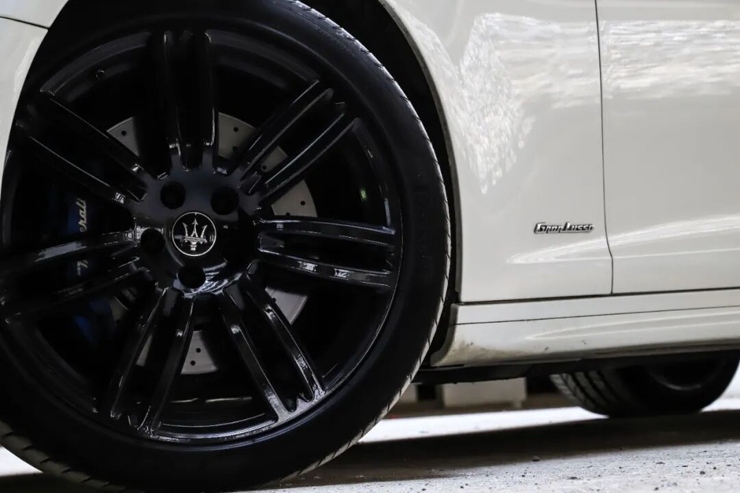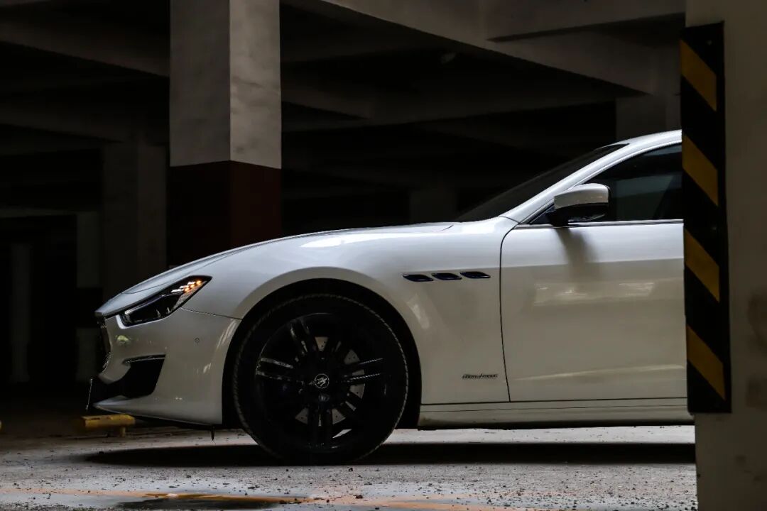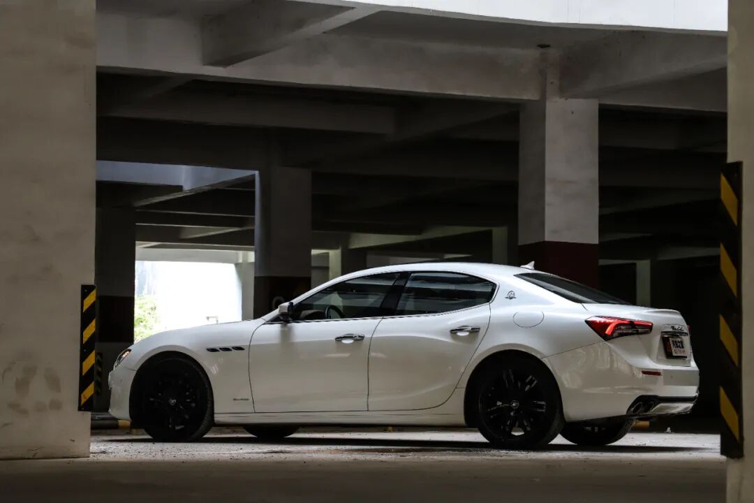 作为一台运动型房车,Ghibli的车头部分明显要更长,C柱之后的尾部则尽量短小,以便营造出运动化的氛围。前翼子板车处的“鲨鱼腮”运用了蓝色装饰进行点缀,以示全新的动力。选装的全黑轮圈与白色车身十分契合,将高级感很好的进行了诠释。