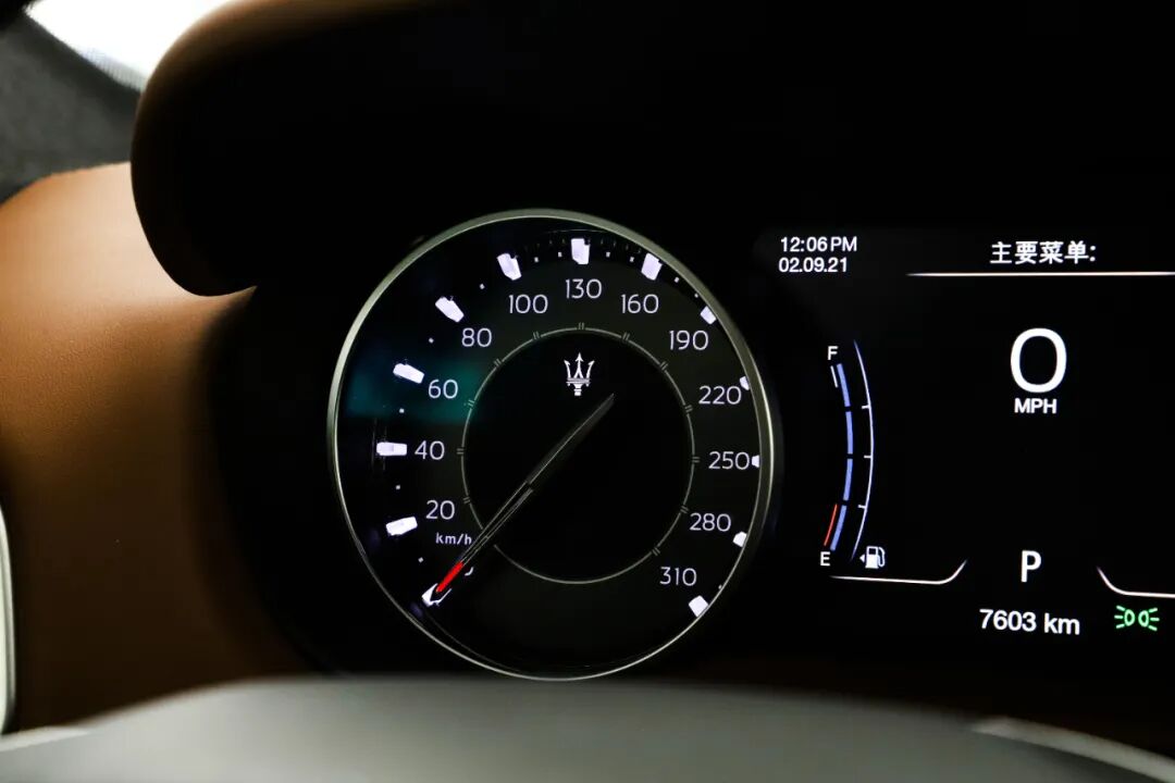 与德系车的科技氛围不同,玛莎拉蒂能够给予你更多的古典美,但并不是老气横秋。老款车型的蓝色仪表改为了黑底,机械式指针得以保留,中间部分的液晶屏显示的信息足够丰富。