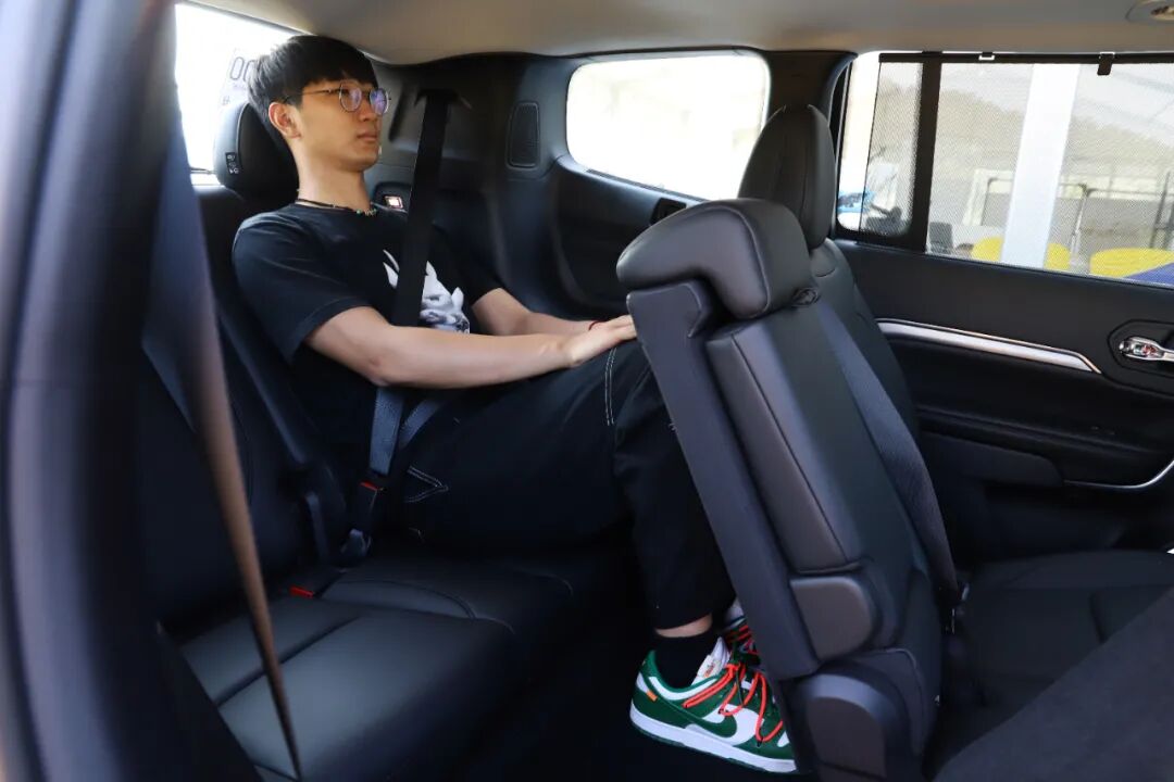 新大指挥官的第三排座椅靠背同样可调,且范围较广,对于头部空间的提升起着至关重要的作用。只不过座椅较矮,有些“小板凳”的感觉,但对于短途乘坐来说影响不大。