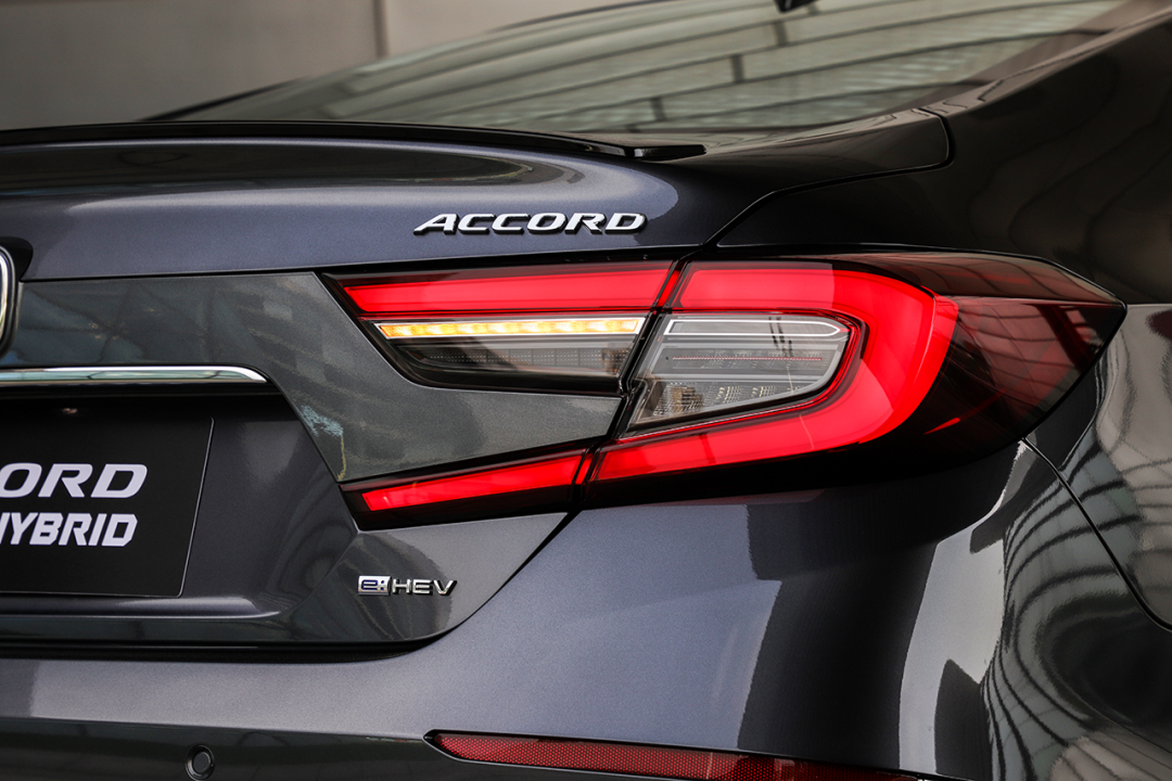 尾部造型没有明显的变化,后包围造型细微调整,混动版车型将采用全新的“e:HEV”尾标。排气方面,混动版车型采用隐藏式单边单出排气布局;燃油版车型则采用双边共双出的排气布局,运动气息更强。