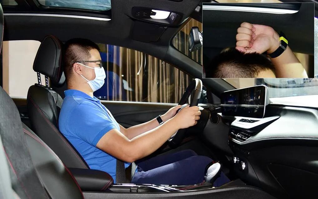 新车将前轴最大限度进行前移,为座舱布局留出更大的乘坐空间,身高173cm的体验者将座椅降至最低位后,有约1拳的空间。后排的空间表现也不错,体验者头部和腿部空间分别为4指和2拳多。