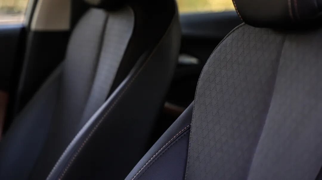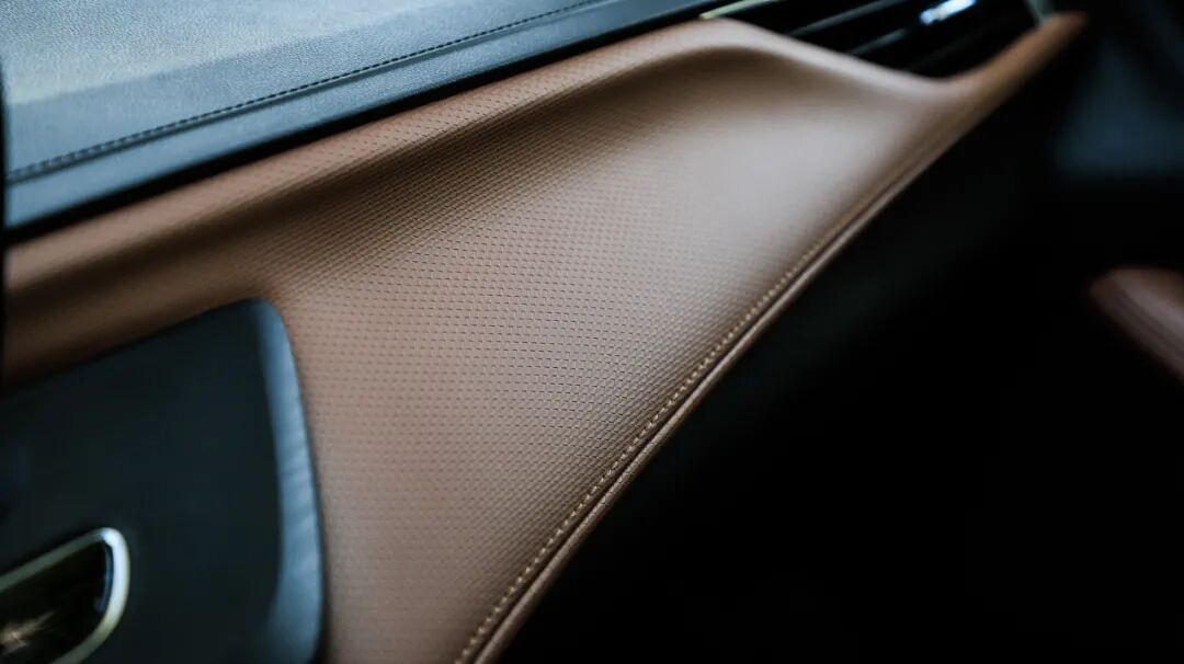 内饰布局一改往日的风格,横向布局下整体重心下移,并采用棕色皮革进去包覆,同样没有夸张设计元素的它给人以不错的亲和力,这种皮革表面类似鱼鳞纹理,手感不错。