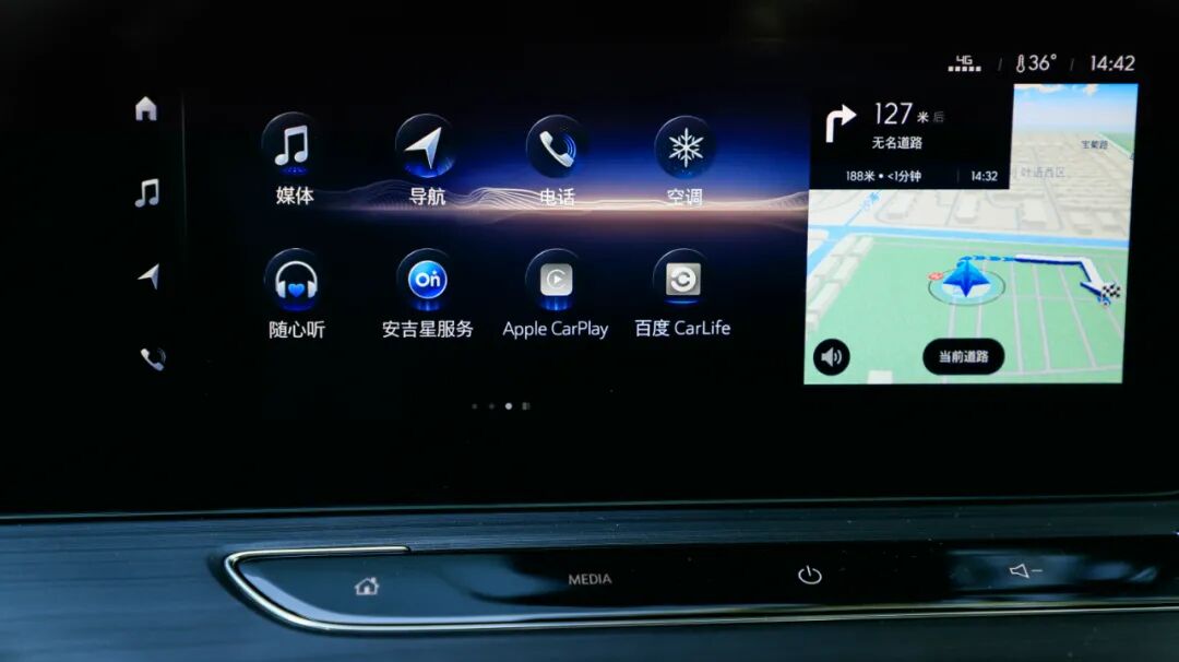 在GL8上的双联屏设计,也同步给了这台威朗Pro,配备双10.25寸全液晶仪表及中控联屏,其具有1920×720的高精度分辨率,并支持双屏联动功能,可实现媒体、电话及导航等信息的同步显示。不仅提升了科技感,还充分满足年轻人对手机映射的功能需求,CarPlay和CarLife统统安排上,不然这么大的屏幕不能投屏就可惜了。