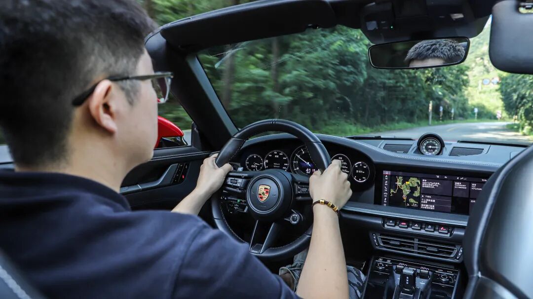 切换至手动模式,这或许是打开911的最佳方式。8速PDK变速箱的升降挡反应极快,并且不会自动执行升挡操作,每一次逼近红线转速的手动升挡都能换来铿锵有力的冲击感,伴随而来的则是3.0T发动机的咆哮声以及排气如雷鸣般的放炮声,手起刀落的感觉玩上一整天也不会疲倦。当然,此刻我更建议您打开敞篷,感受后置发动机毫无遮拦的环绕声效,迅速收油时的回火声在隧道中仿佛如烟花般炸开,这或许就是放飞自我的感觉吧。