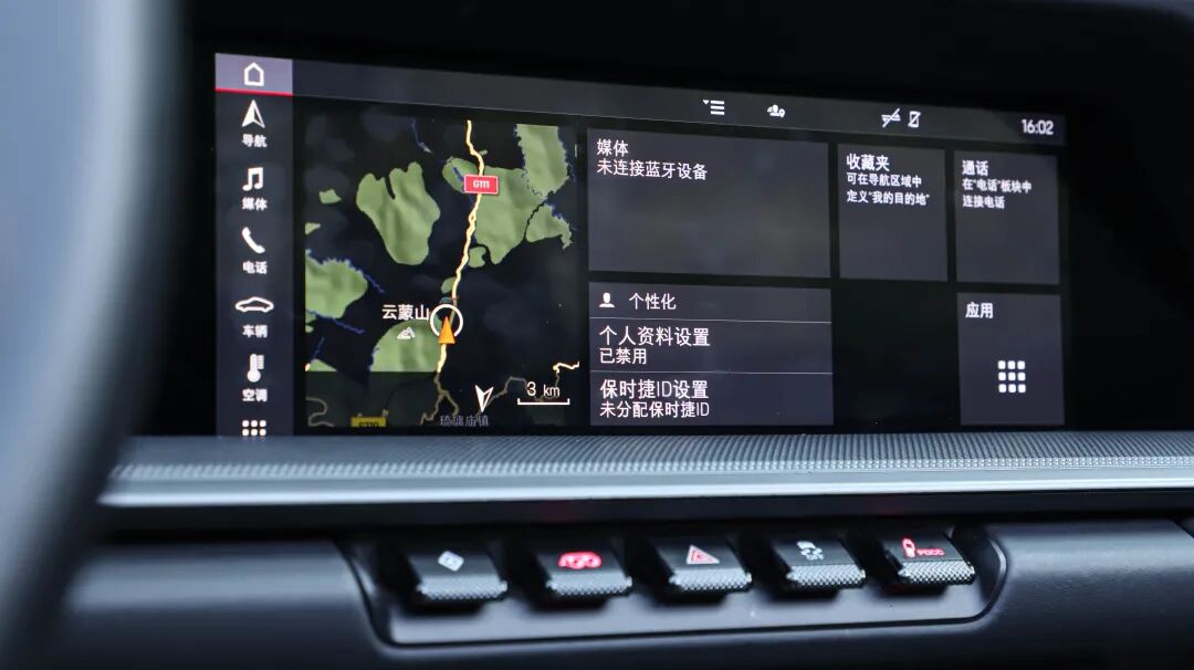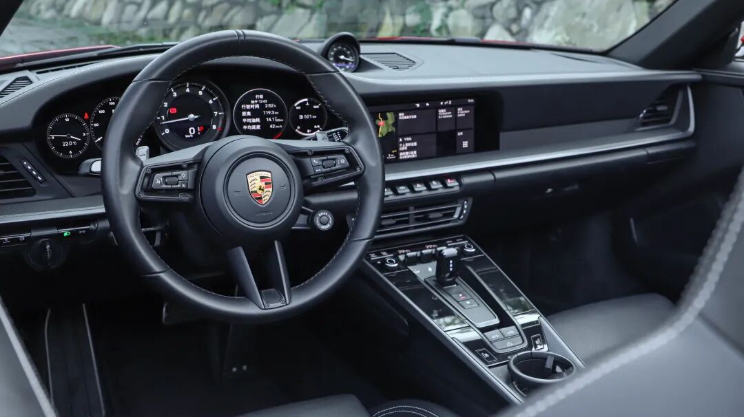 三辐式运动方向盘采用了外露螺丝的设定,带有浓厚的工业气息;更科技化的五圆仪表盘依旧酷劲儿十足,两侧各采用7英寸液晶屏幕显示,观感更为直接的转速表采用的是机械指针,同时布局在仪表正中央。10.9英寸的中控显示屏内置有保时捷智慧互联 (Porsche Connect),CarPlay连接、车联网以及卫星导航通通不在话下。