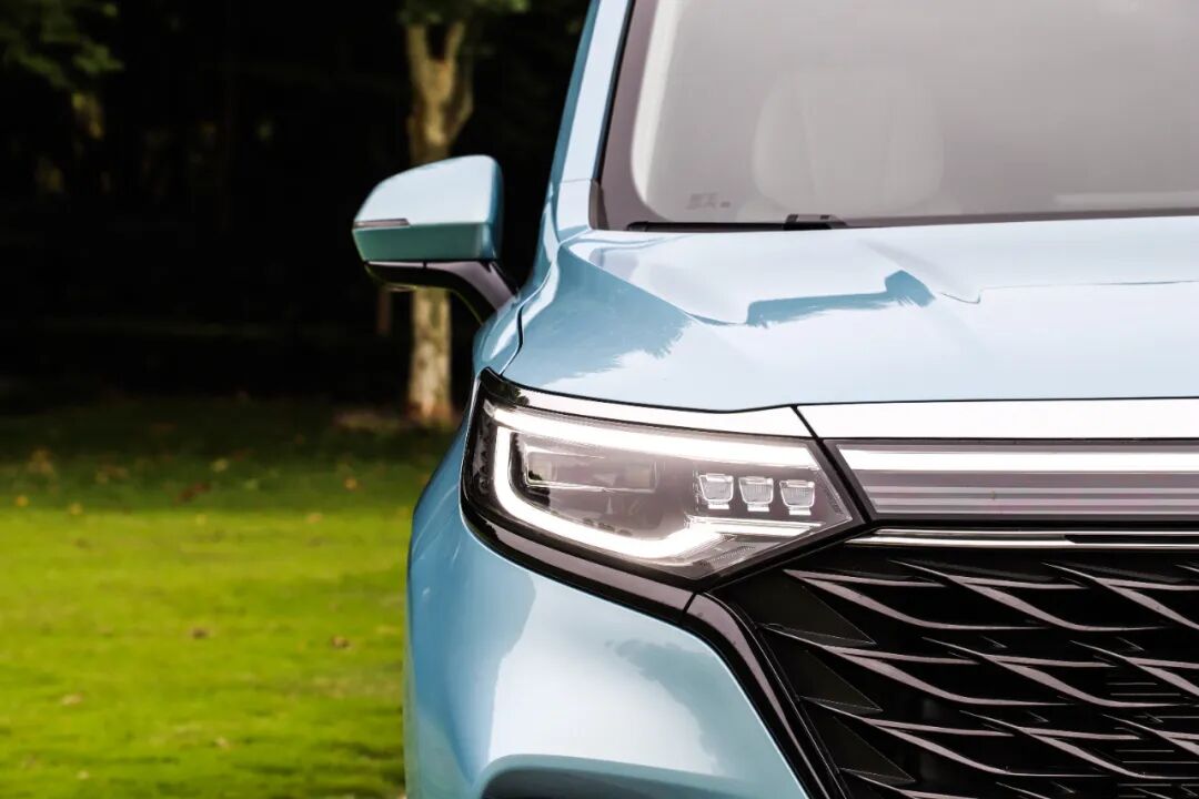 大灯组造型相当别致,内部为全LED光源,日间行车灯贯穿整个车头,并与格栅融为一体,毫无违和感,看起来也很有辨识度,算是车头部分的添彩之作。