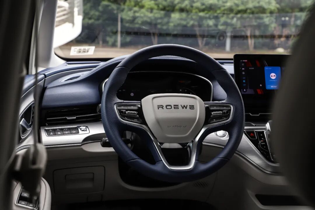 三辐式方向盘是荣威的家族样式,粗细适中,真皮材质细腻,握感相当不错,同时盘辐相比GL8要明显小了不少,并不会给你过多“开大车”的感觉。