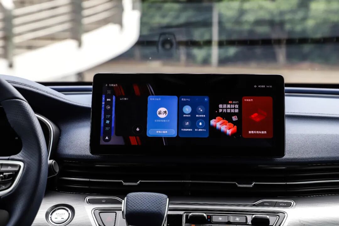 中控屏幕尺寸为12.3英寸,内置互联网汽车维纳斯智能系统,在UI设计、流畅度等方面有着不错的表现,支持90秒连续语音输入功能,全舱交互式语音控制可让三排乘客直接通过“打开天窗”、“关闭空调”以及“我想听音乐”等语音,控制魔吧、空调、多媒体、天窗等,使用起来非常的方便。同时还拥有各类小程序,在功能性方面完全没有问题。