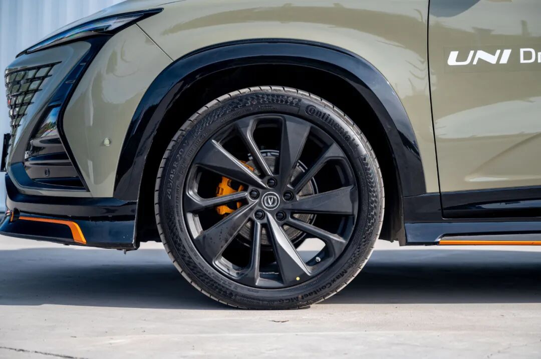 轮胎规格上,实拍车型采用马牌MC6轮胎,规格为245/45 R20。这款轮胎为运动定位,达到工作温度后胎面粘性不错,抓地性能良好,但也更容易粘住石子。