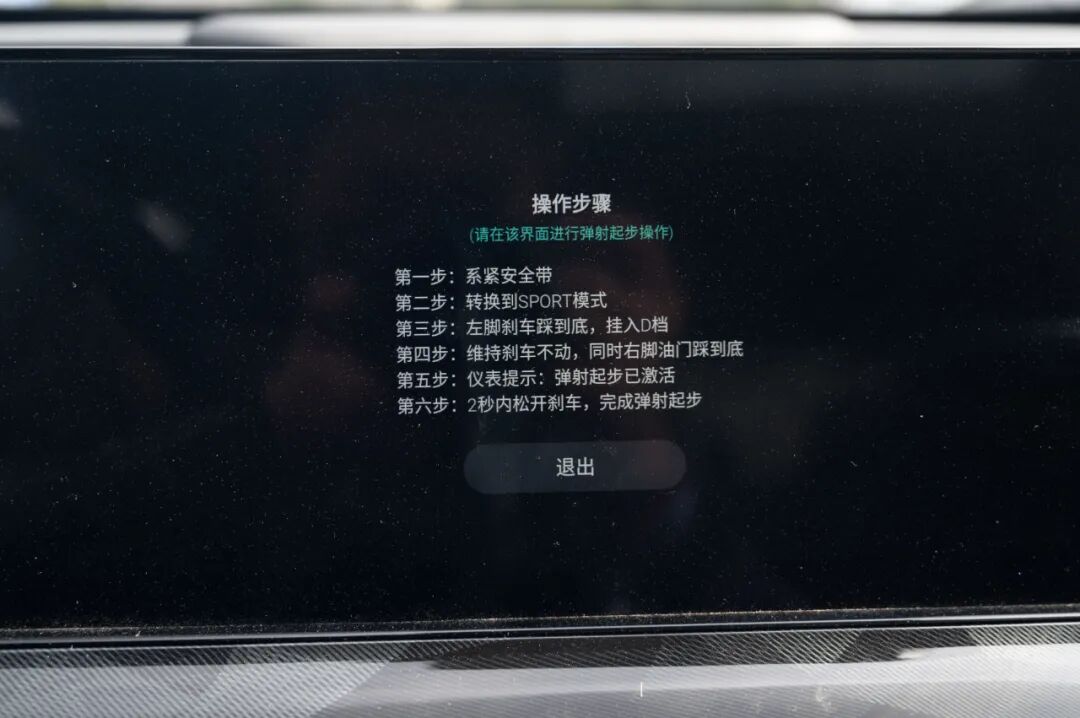 新款UNI-T支持弹射起步模式,在车机中关闭ESC并开启弹射起步功能即可。开启后会显示相应的操作提示,考虑的很周全,有点“新手教程”的感觉。