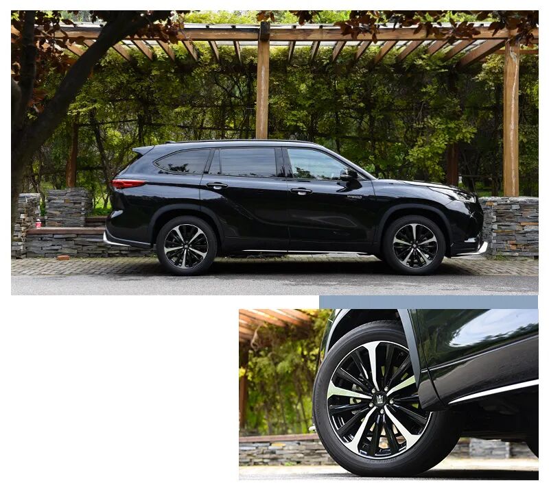 车侧造型简洁,缓缓上扬的腰线给人蓄势待发的感觉,翼子板以及后门板突起的区域具有较强力量感。20英寸的铝合金轮圈造型采用多辐双色设计,搭配中央的皇冠Logo,视觉效果格外精致且兼顾豪华属性。