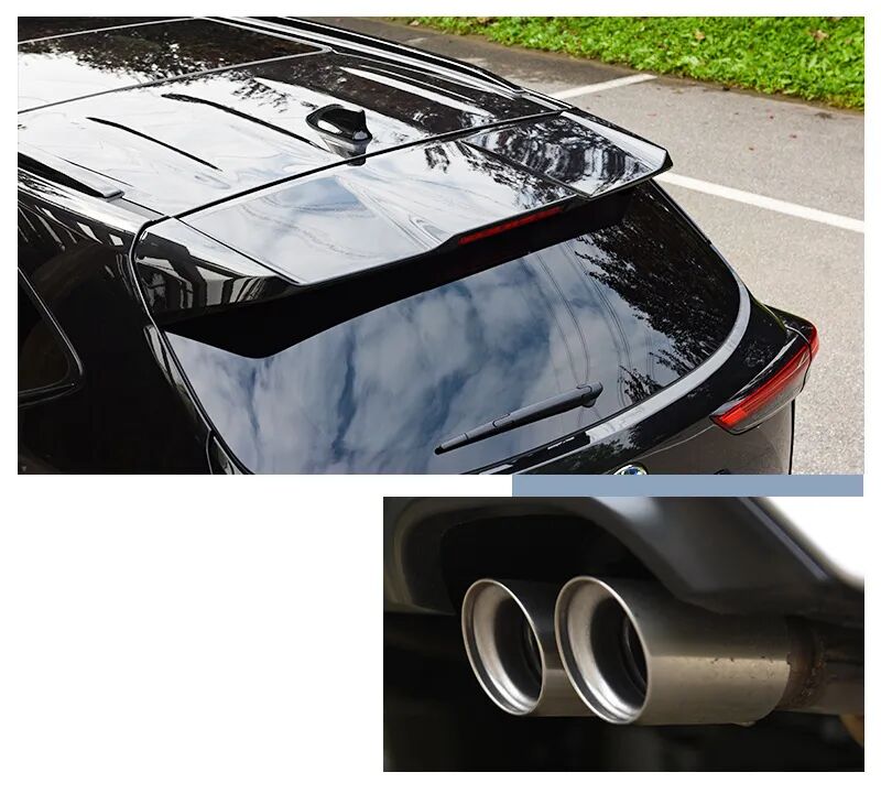 车顶线条采用微微溜背的设计突出了些许动感,车尾顶部的大尺寸扰流装饰集成了高位刹车灯,实用性和装饰效果都比较到位。单边双出排气采用镀铬材质,烘托了运动属性。