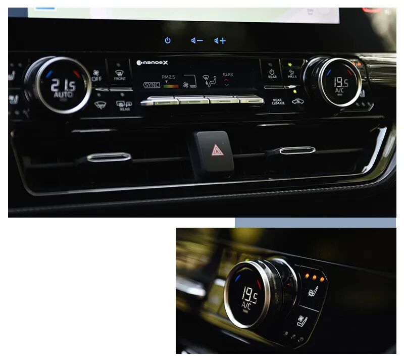 皇冠陆放的三温区空调采用实体按键控制,通过旋钮以及按键结合的方式更容易上手,此外实拍车型还配备了前排座椅三档调节的通风以及加热功能,舒适性得到进一步提升。