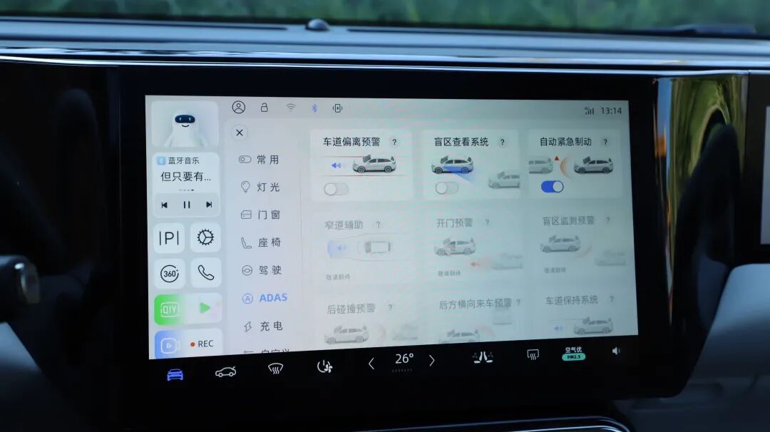 座椅加热功能全系标配,前排座椅通风以及后排座椅加热均可选装,配置方面足够厚道;在ADAS界面中,我们可以看到Leap Pilot 3.0智能驾驶辅助系统控制页面,包括有全速ACC自适应巡航、AEB自动紧急制动、车道偏离预警等22项辅助驾驶功能,不过由于试装车的缘故,功能并没有完全开放。