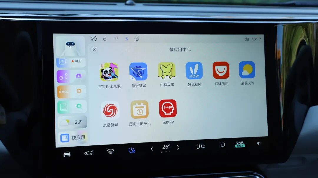 360度全景影像的清晰度还是非常出色的,多角度摄像头可以确保车辆行进时无死角,此外,快应用中心设置有诸多APP,如微信小程序一般的使用方式非常快捷。