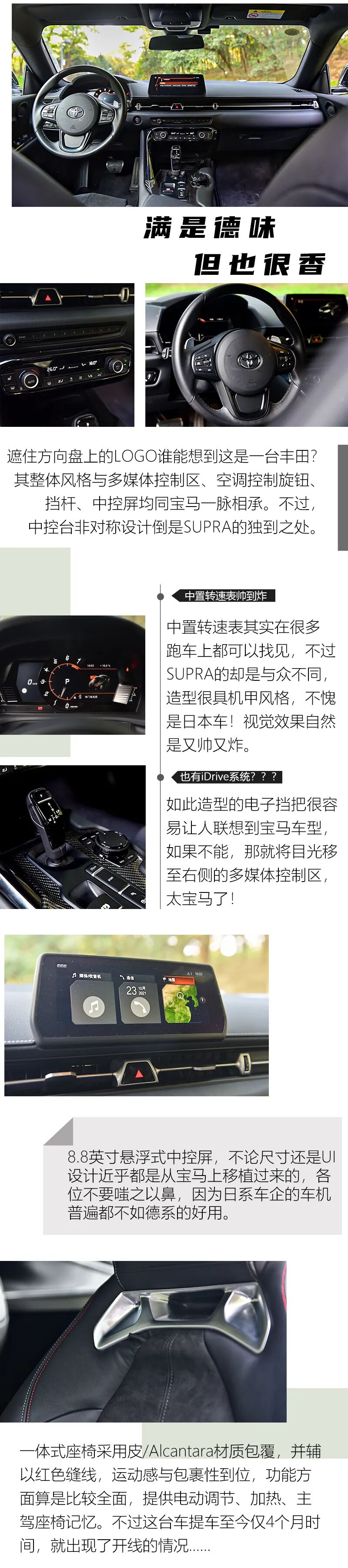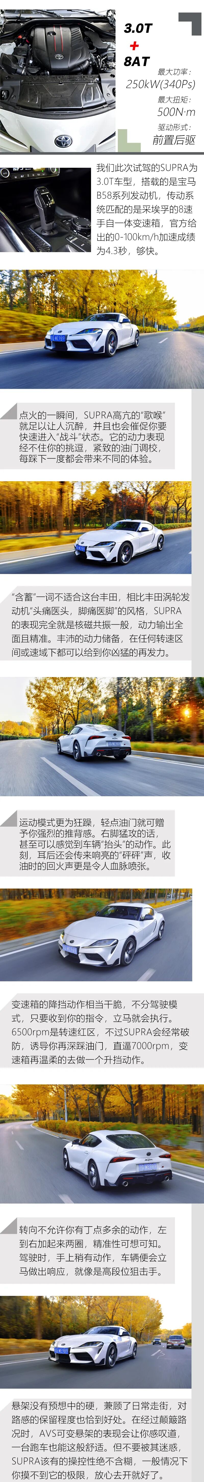 或许有很多人朋友都会说,“它不纯粹了,不是以前的SUPRA了”,没错,它的确不是了,但它可以给你带来更好的体验,这样还够吗?车迷的情怀在资本面前,或许不值一提。