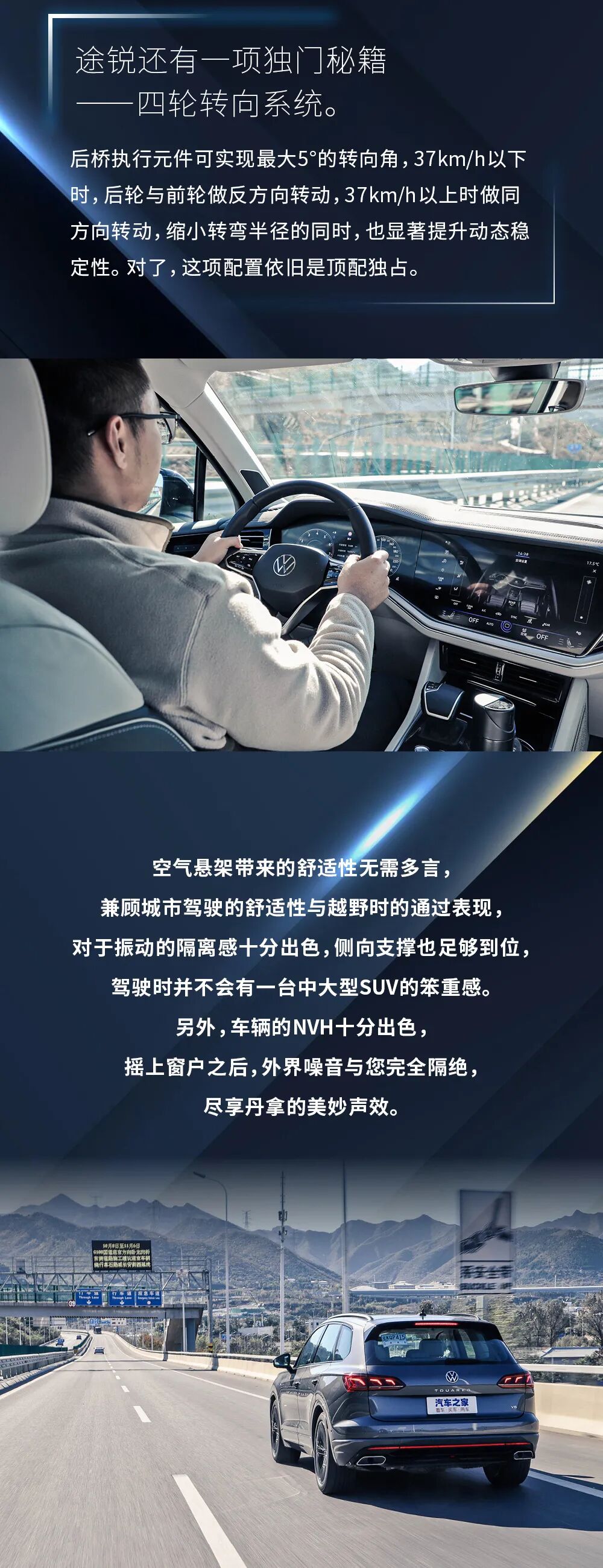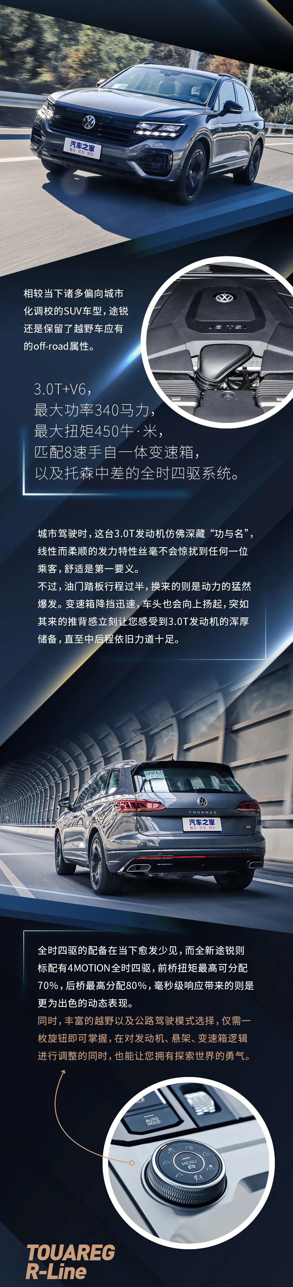 相较于其他豪华品牌对⼿,诞⽣于MLB Evo平台的途锐同样有着明星般的竞争⼒,“⿊武⼠”⻛格的R-Line运动套件从颜值切中⼈群喜好,出⾊的通过性也带来了远超城市SUV的多维度驾驶体验,丰富的主被动安全配置以及数字化座舱的打造符合价位⽔准,兼顾个性需求以及豪华感营造,剩下的,就是您是否接受82.18万元的售价呢(⼚商指导价59.18-82.18