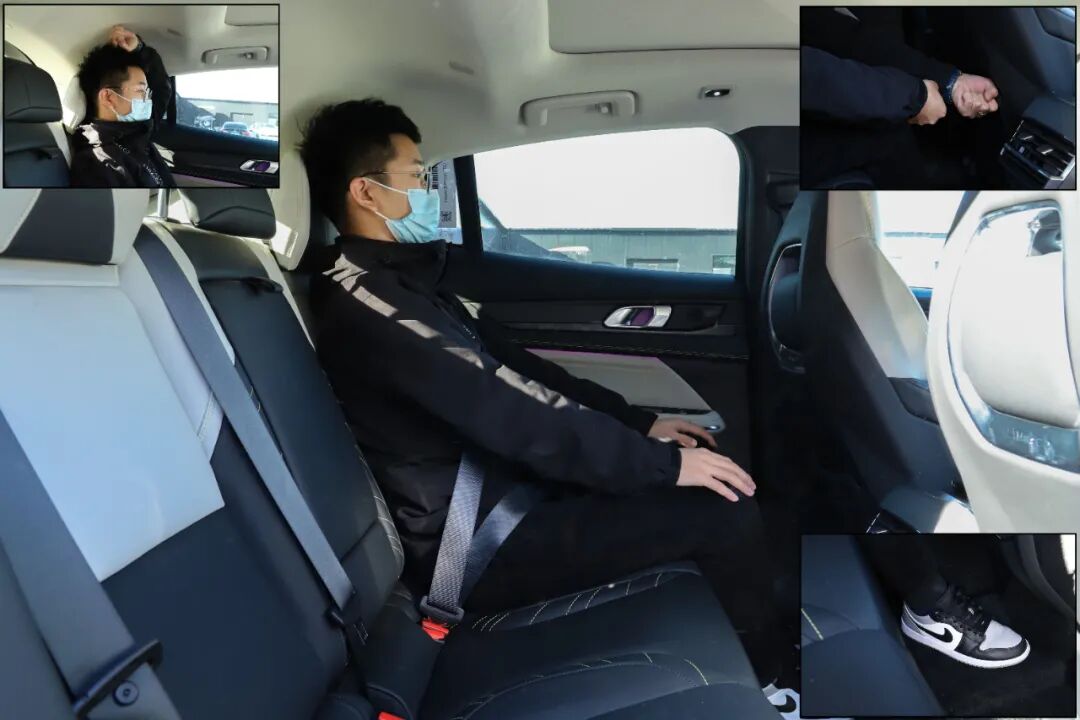 保持前排调整好的位置不变,同一体验者来到后排,此时的头部空间同样为一拳左右,而腿部空间超过了两拳,相当充裕。值得一提的是,新车的后排地板中央凸起很小,近乎纯平,对于中间的乘客还是很友好的。