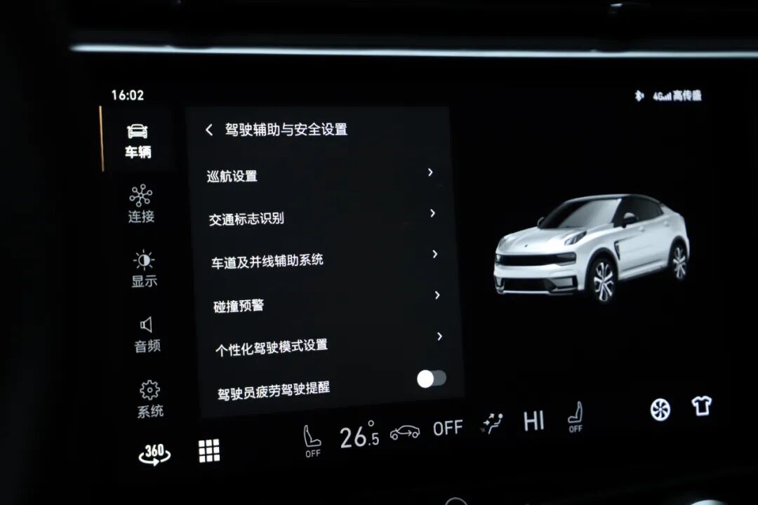 驾驶辅助层面,这台领克05的可以用全面来形容了,拥有全速自适应巡航、并线辅助、车道偏离预警、车道保持辅助、道路交通标识识别、防碰撞预警等主被动安全系统。