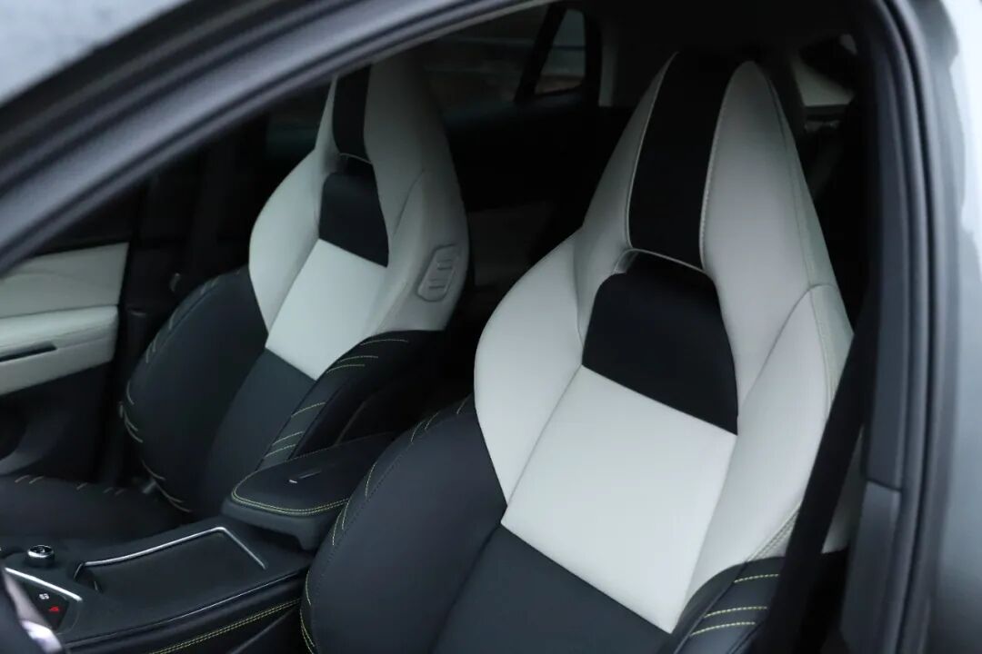 宽大的运动座椅看上去十分的唬人,麂皮和真皮材料拼接在一起,很有性能车的味道。该座椅对驾驶员的肩部和腿部能够有着不错的承托能力,两侧的支撑性也足够到位。