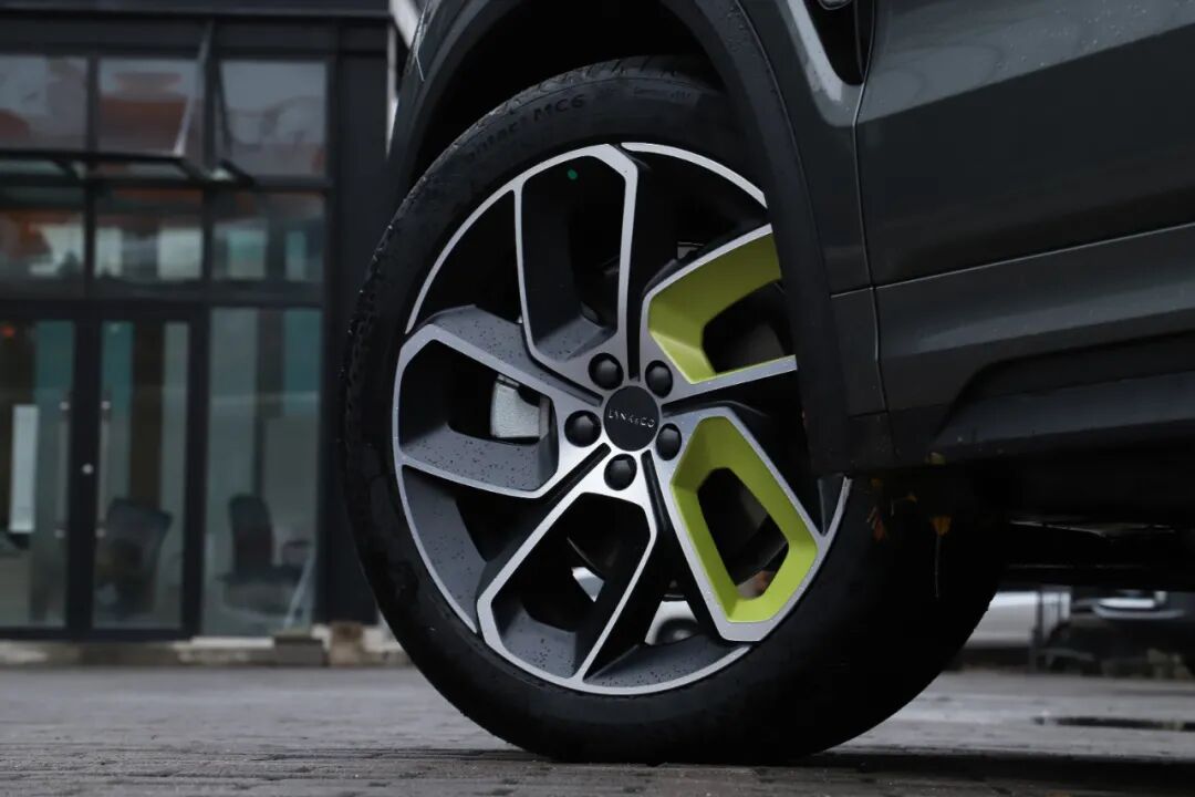 双色的轮圈视觉上依旧抢眼,可以看出领克05在尽力刻画着“年轻化”的标签。轮胎规格为245/45 R20。