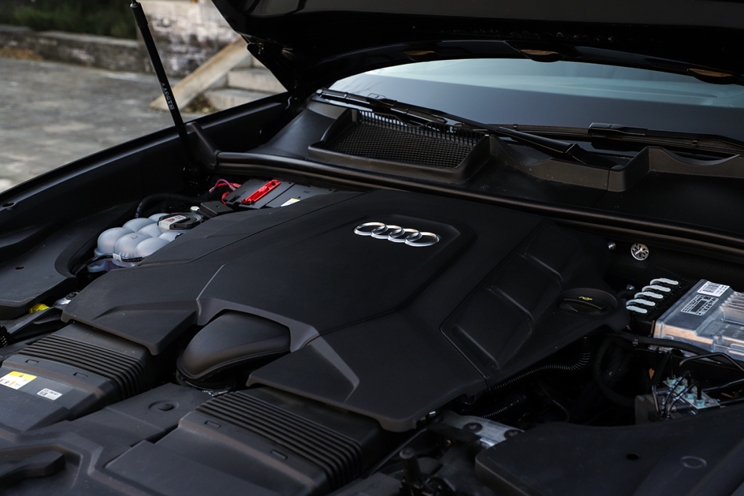 本次试驾车型为2022款 55 TFSI 豪华动感型,搭载一台3.0T V6涡轮增压发动机,并带有48V轻混系统,最大功率为340马力,最大扭矩为500牛·米,与之匹配的是一台8速手自一体变速箱,官方公布的0-100km/h加速时间为6.2秒。