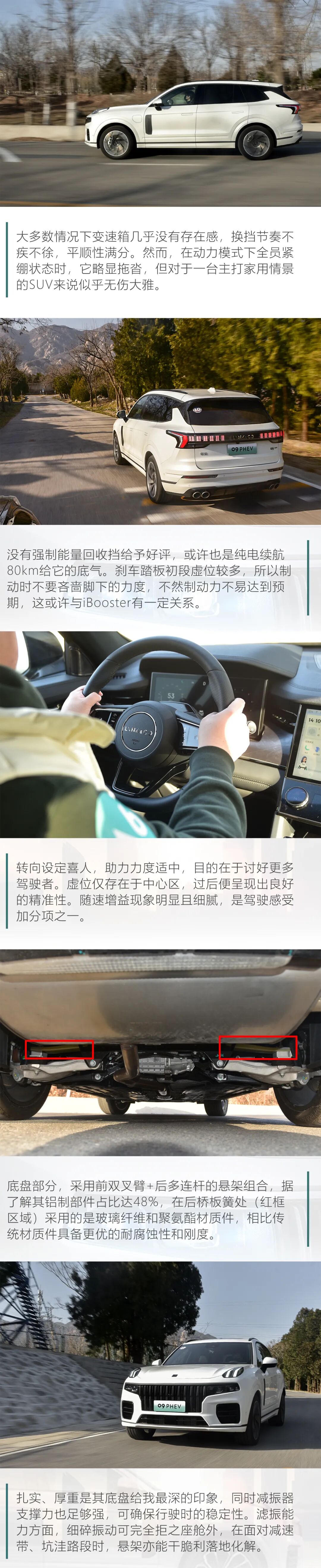 驾驶感受方面,抛开性能不谈,领克09 PHEV在底盘调校方面着实让人拍手称快,可以感受到沃尔沃对其的赋能,质感与高级感远超想象。静谧性方面,由于本次试驾为封闭道路,故没办法体验高速工况下的表现,不过在中低速行驶时静谧性表现非常优异。
