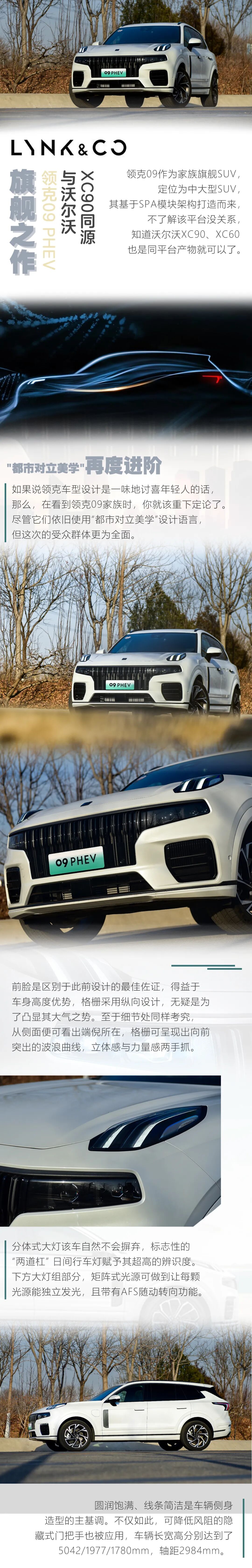 领克03+凭借性能名声大噪,成为中国品牌性能车的代言人,而今天的主角领克09 PHEV更是值得被铭记,因为它是第一款基于SPA架构打造的领克车型,与沃尔沃XC90共享技术,轴距也相同,但价格却不到一半。面对如此一款车,您不心动吗?