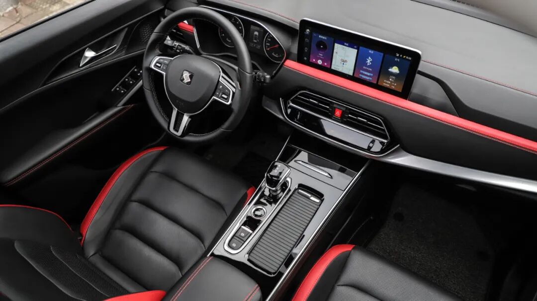 内饰的风格可没有外观那样激进,偏向于简洁且易于上手的风格。以黑色为主基调,搭配红色饰条和缝线的点缀,内心再加10马力。
