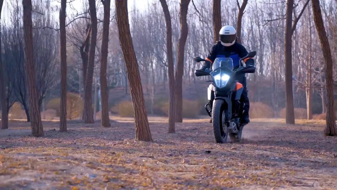 再加上这台最大功率43Ps,最大扭矩37N·m的实际排量373.2cc水冷单缸四冲程发动机,可以实现3.9 kg/Ps的推重比,百公里加速仅需5秒出头。这样的动力水平无论是日常驾驶还是跑山、越野都可以应对。