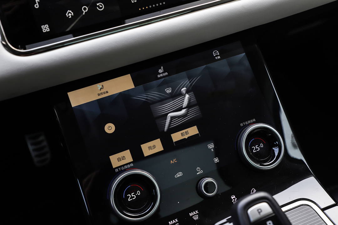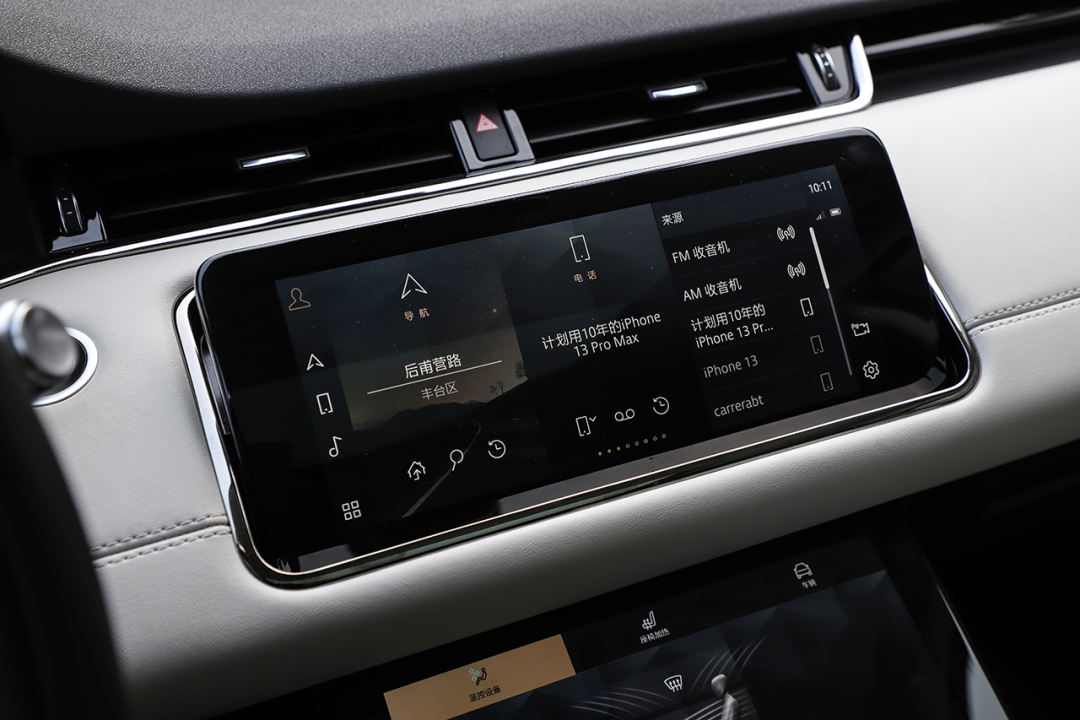 双10.2英寸中控屏的显示清晰度出色,反光现象能够很好地抑制,但同样存在画面过渡不流畅的现象。功能方面,上方屏幕主要负责多媒体系统,支持导航、语音识别、车联网、CarPlay等功能;下方屏幕主要负责调节车辆空调、驾驶模式等。
