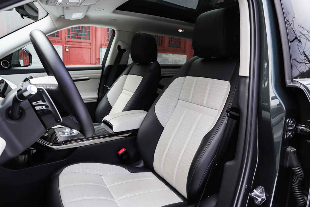 座椅面料采用黑/白拼接的配色,营造出高级感。座椅内部的填充物软硬适中,兼顾了支撑性,长时间乘坐不会觉得疲劳。配置方面,主/副驾驶座椅均支持电动调节以及座椅加热功能。