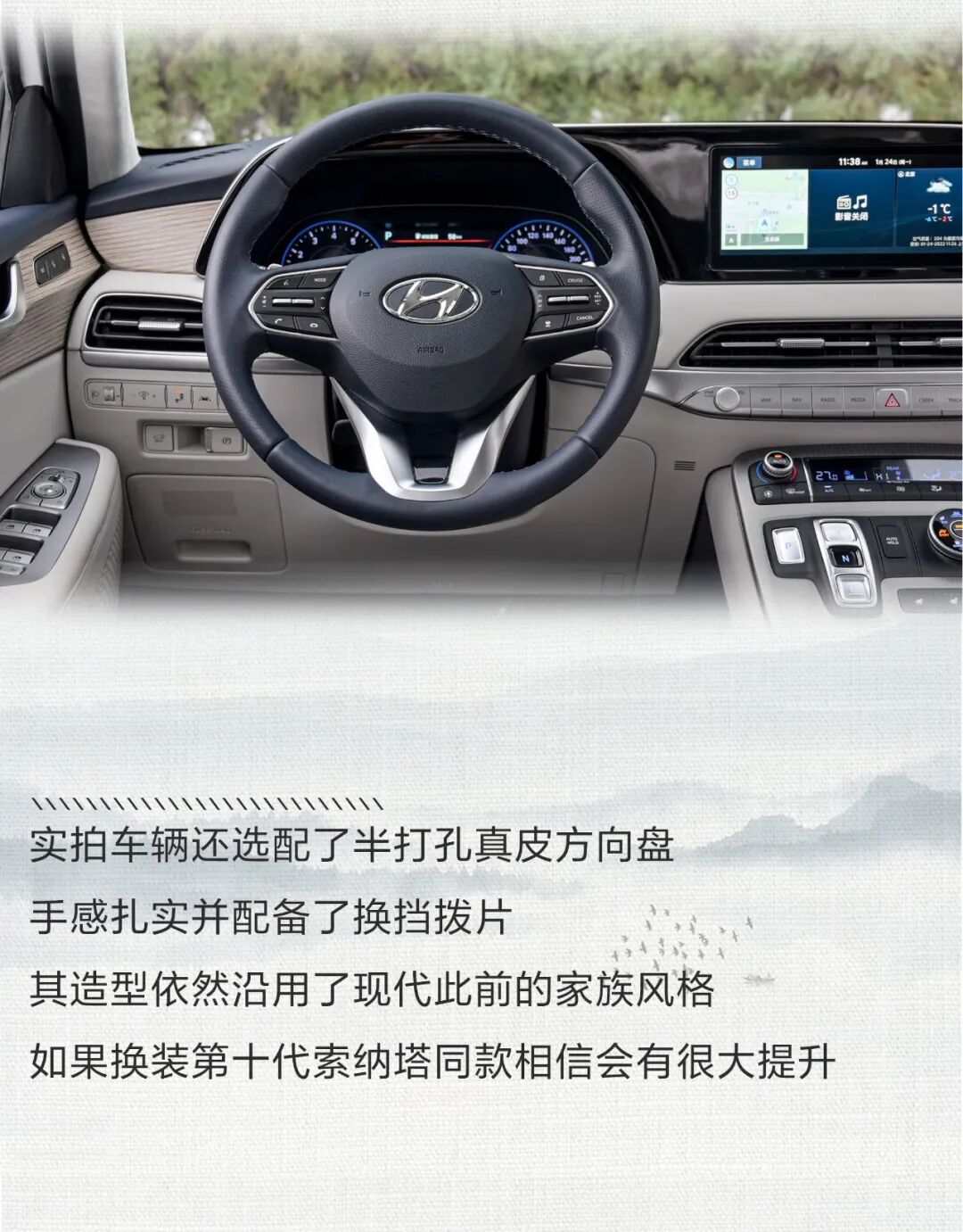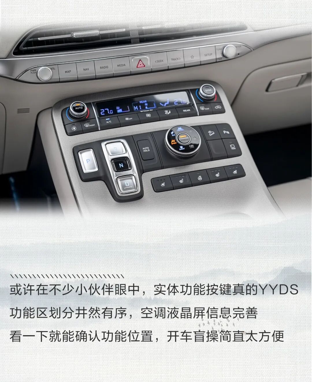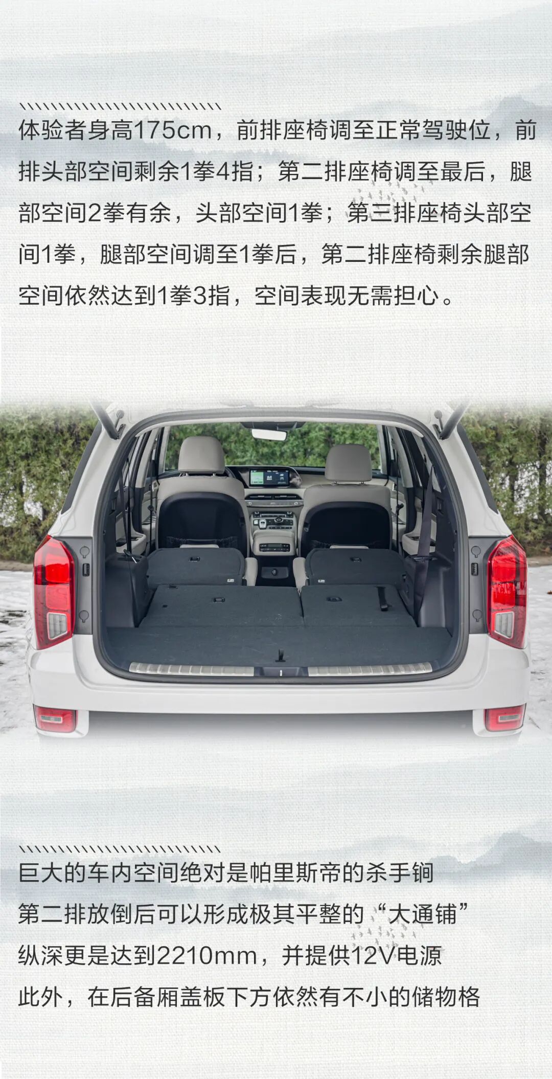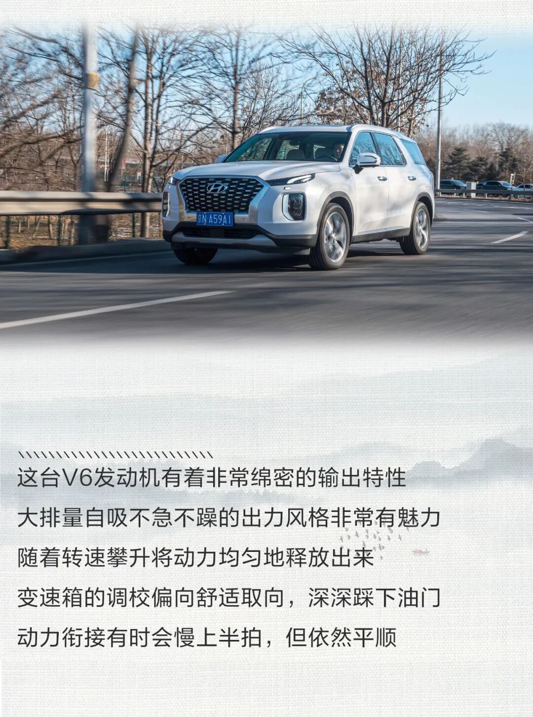 进入车内后,干净简洁的白色+木纹装饰非常凸显豪华氛围,同时丰富的储物空间与空间灵活性又可以胜任“奶爸车”的工作。唯一可惜的或许是海外市场的3.8升GDi直喷发动机依然与国内消费者无缘,但这台3.5升V6发动机运行品质已足够出色,实测8.4s的0-100km/h加速成绩,再加上实测12.6L/100km的油耗也可以接受,并且只需加注92#汽油。