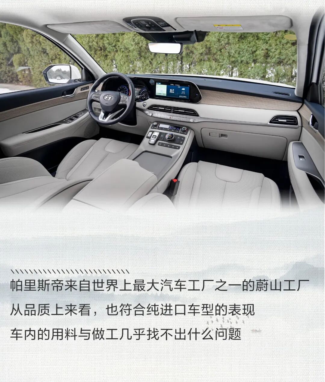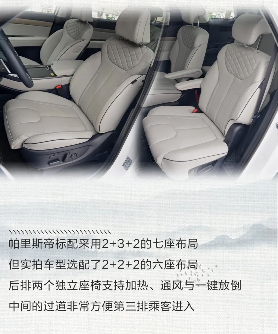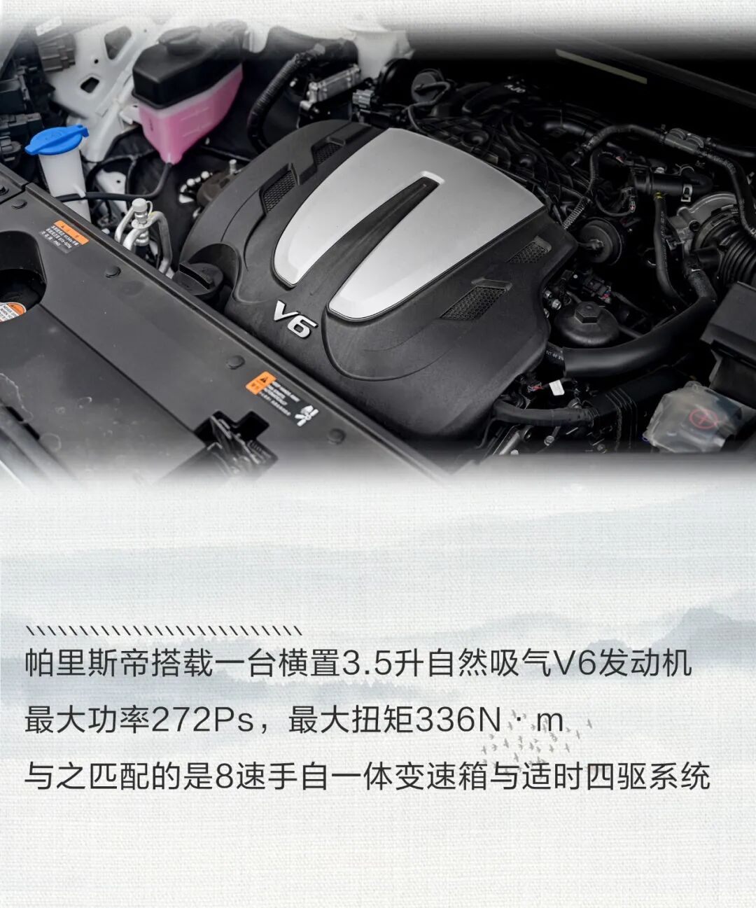 帕里斯帝全系共三款车型,售价区间为29.88-32.98万元。本次的试驾车为3.5L自动四驱GLS版,是全系的最顶配车型。此外,还选装了8000元的智能套件(SVM 360°全景影像、BVM 盲区显示系统)和1.2万元的设计套件(含2+2+2布局六座、Nappa真皮座椅、半打孔真皮方向盘、迎宾灯、第二排座椅通风、绒面车顶内饰、金属脚踏板、铝合金行李箱装饰板)。