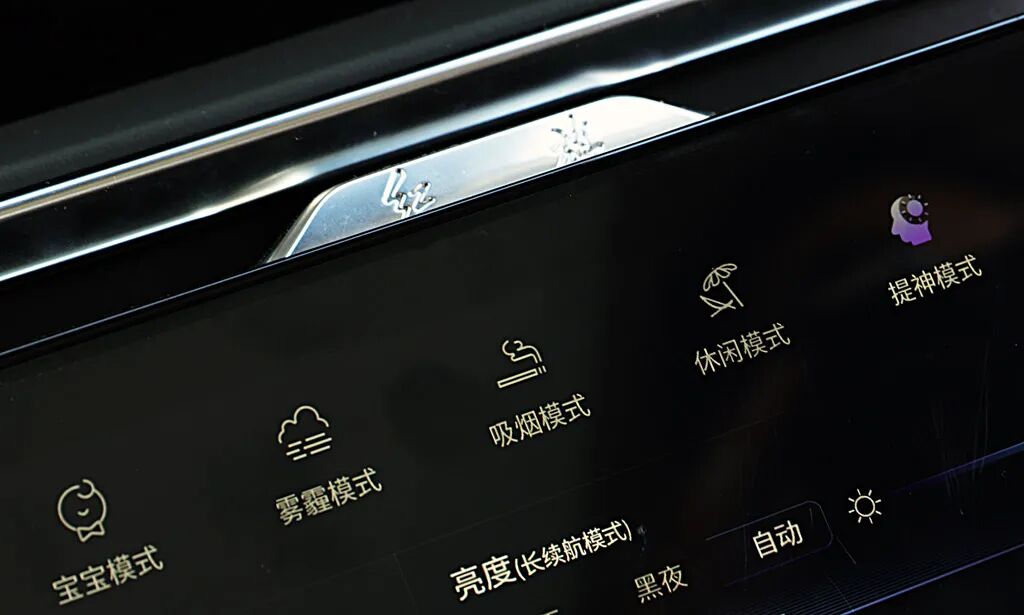 比如,通过这块屏,E-HS9可以切换宝宝模式、雾霾模式、吸烟模式等多种车厢场景,另外,这台车的前排座椅还提供了多种按摩模式可供选择,相关功能也是通过这块屏幕实现的,实测,座椅按摩的力度相当给力。