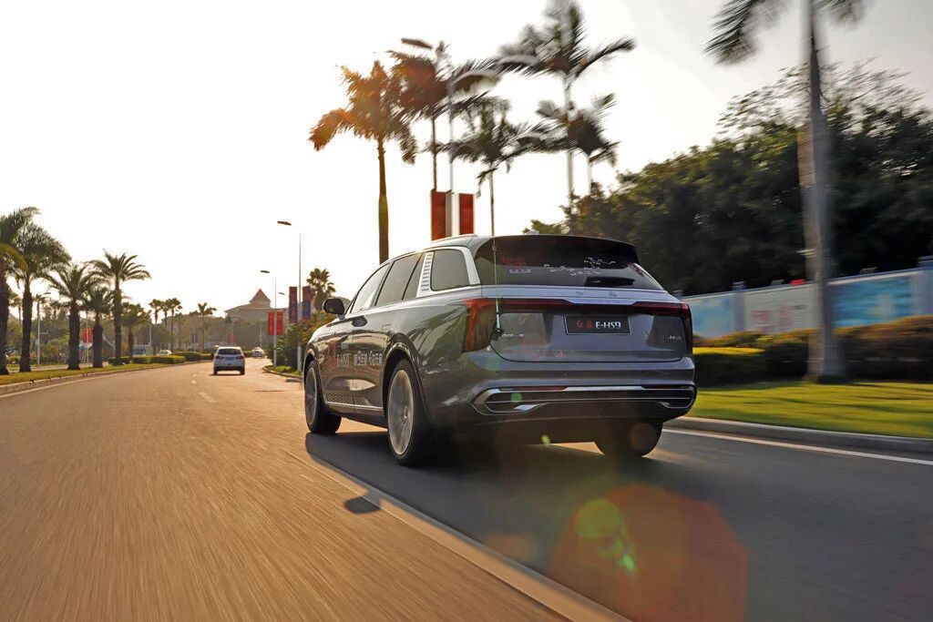 E-HS9的尾部采用了纵向与竖向结合的贯穿式尾灯,传承了红旗品牌家族的经典元素,当然,车尾的“红旗”二字也是红旗品牌永远不变的基因。
