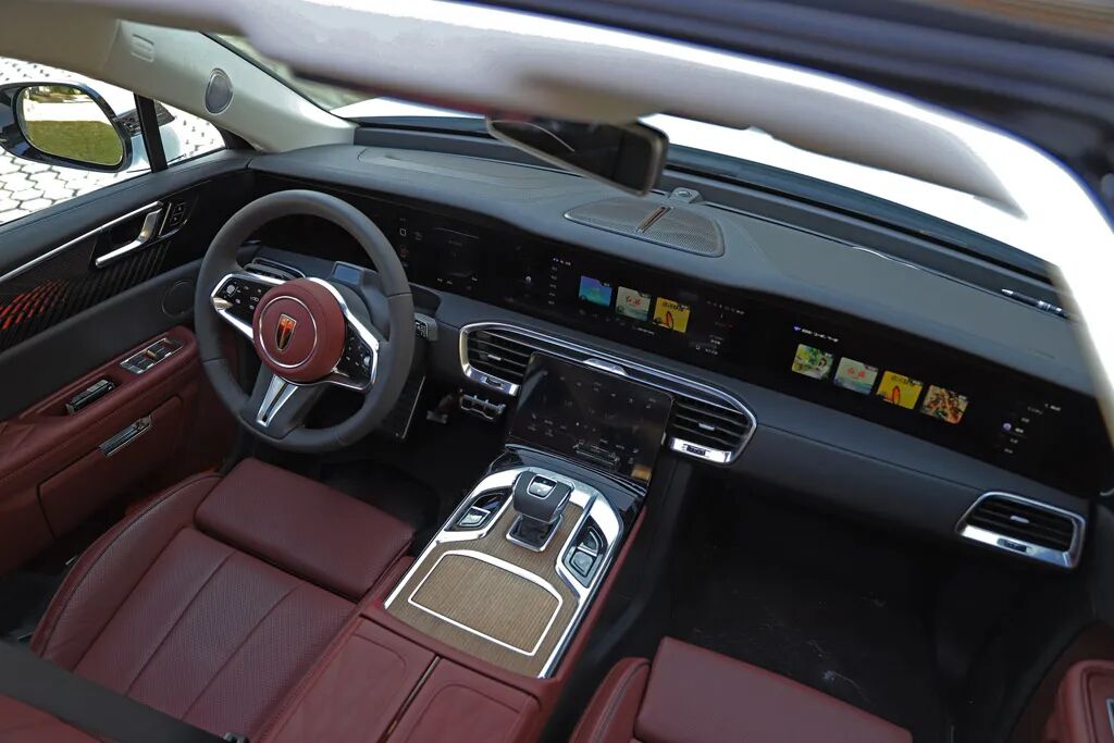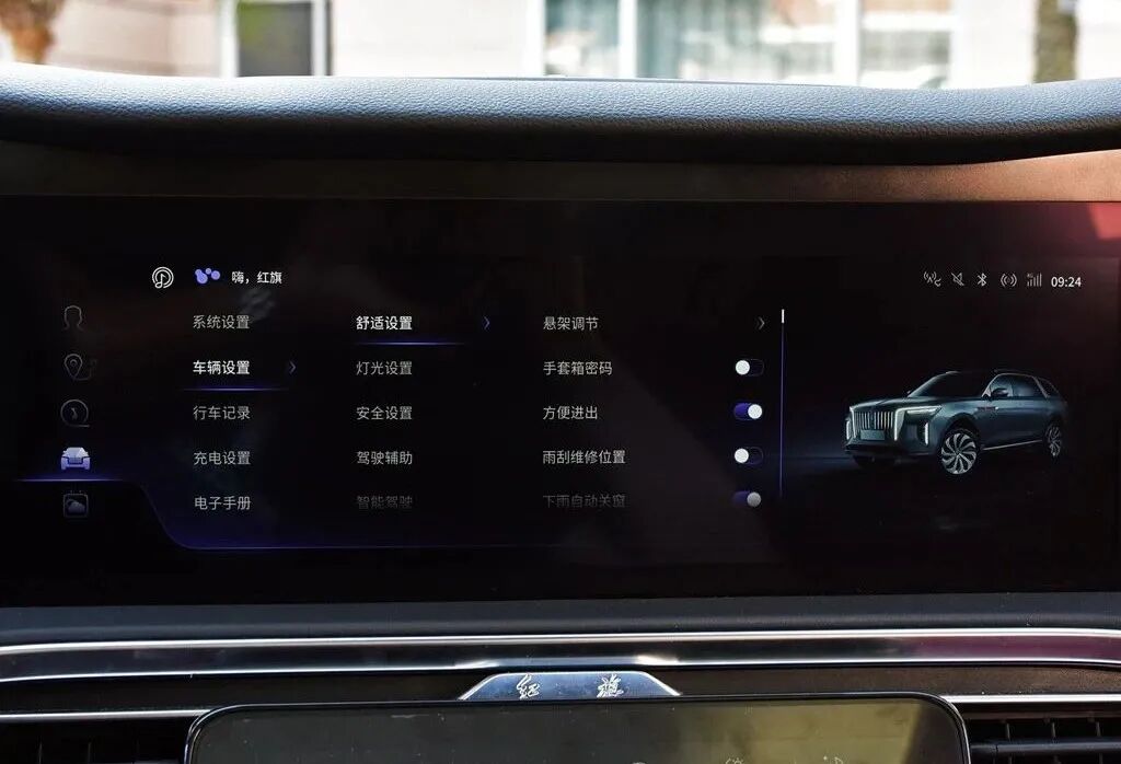 而在E-HS9上,豪华元素与科技元素都足够丰富,但是细节的地方却依然隐藏一些“小魔鬼”,车机系统略显卡顿、胎噪、遍布全车的镀铬饰条细看起来缺乏精致感……不过这些都不会破坏这台车的中式豪华的气质,设身处地的想一想,在手握六七十万预算的情况下,我大概率不会选择这样一辆国产、电动、豪华SUV,但是如果某天,我有幸参加了个活动礼宾车恰好是这样一辆大红旗,坐在后座的我将会是怎样的受宠若惊啊!等等——坐红旗车的后座,我配吗?