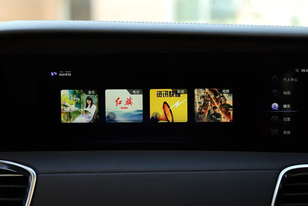 副驾驶屏幕:可以控制影音娱乐及导航等功能,还有少量车辆控制功能。