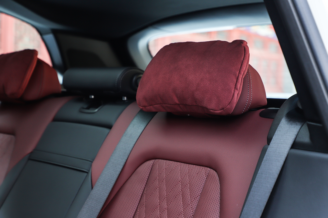 后排的乘坐体验不算差,全景天窗纵向延伸的范围足够广,原车自带的两个后排头枕很柔软,头靠上去很放松。后排乘坐空间不是它的优势,满足日常使用问题不大,但仅限于此,只能算是刚刚够用的水平。
