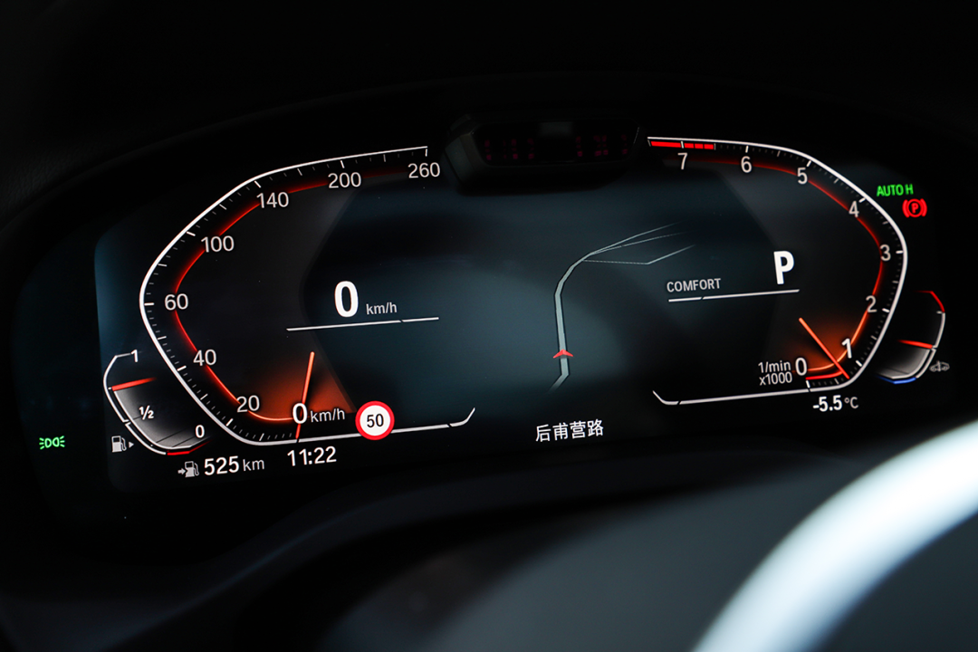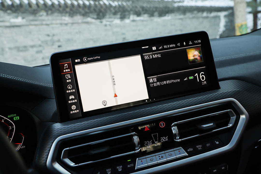 全液晶仪表盘为12.3英寸,显示清晰度符合豪华品牌第一梯度的表现。中控屏搭载最新的iDrive 7系统,加入了天猫精灵、QQ音乐、喜马拉雅等本土化应用,支持导航、车联网、OTA升级、无线CarPlay等功能。