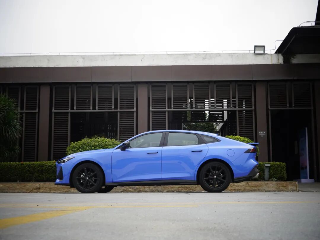 绕到车侧来看,它的造型优势一下就体现出来了,纯纯的溜背轿跑设计,就挺帅的,只是受限于车身级别,还是不够修长。轮圈标配是18英寸,熏黑样式,轮胎采用了马牌MC6,型号为245/45 R18。
