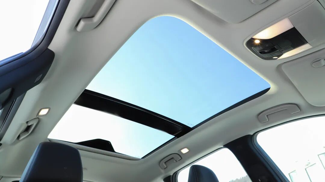 试驾车型选装有Bose Performance致臻系列音响,配备17个扬声器,支持噪音补偿、虚拟环绕声等参数调整。低频表现澎湃有力,依旧是Bose熟悉的感觉,出色的氛围感更适合展现流行乐、嘻哈音乐等类型。巨大的全景天窗全系配备,通透性极强。