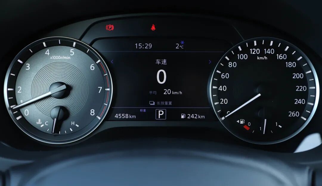 7英寸液晶仪表的两侧搭配的是机械式仪表,没有花哨的元素,一切以实用性为主;7英寸的中控屏内置有全新INFINITI InTouch 2.0智能互联系统,支持CarPlay以及CarLife连接,倒车影像功能支持多角度查看,清晰度一般。