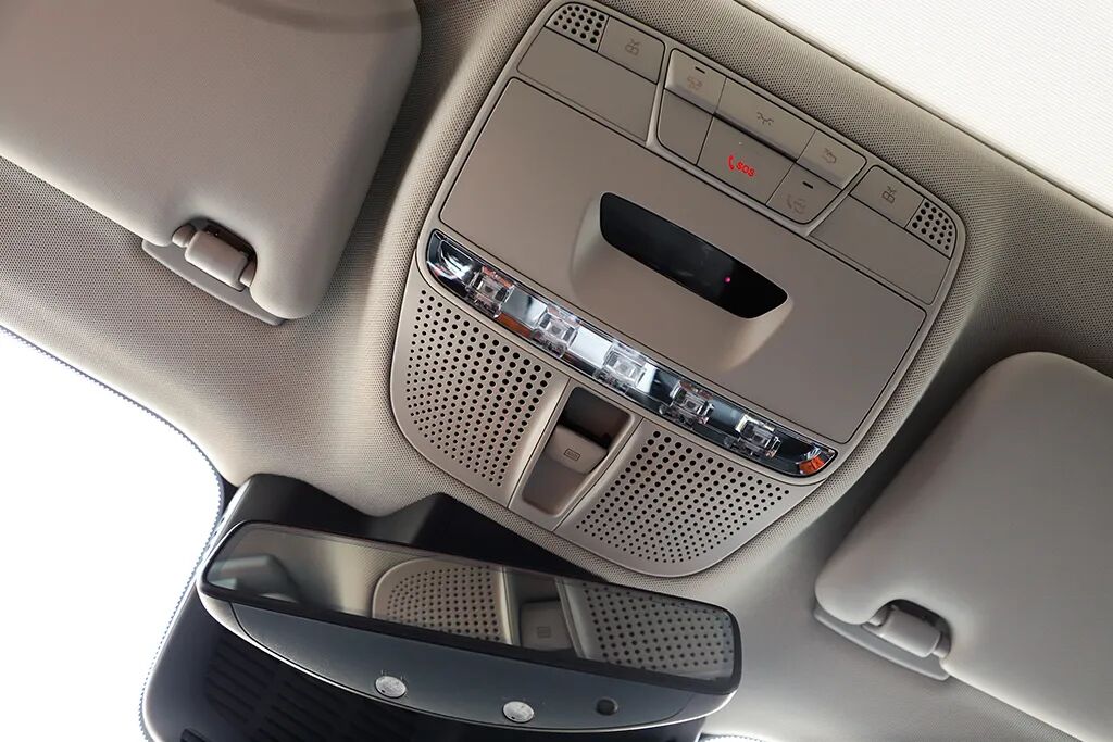 抬头看,位于车内灯光控制区域前方,有一个红外探测器,若驾驶员在天黑后将手伸向副驾驶拿东西,内后视镜下方的灯光会被点亮,提供照明辅助的功能,这个配置确实够暖心。