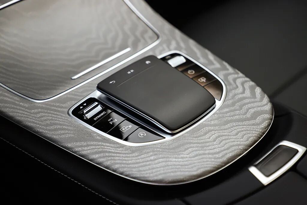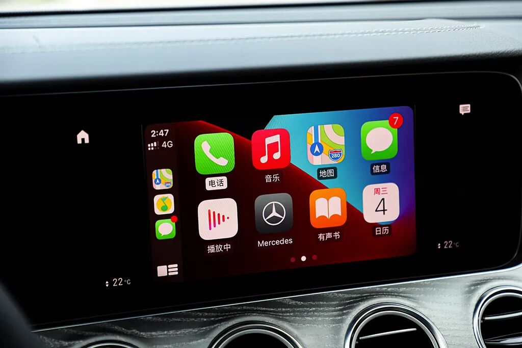 中央12.3英寸大屏幕搭载最新的MBUX信息娱乐系统,还可通过触摸屏和下方触控板进行操作,系统除了支持CarPlay这种常规功能外,还具有AR实景导航、车内空气监测,以及座椅自动定位等功能,另有多种氛围主题供选择。