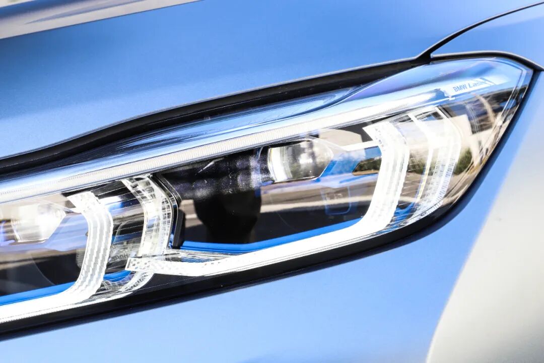 激光大灯为标配,带有自适应远近光功能,为了满足国内的法规政策,照射距离为500米,大灯内部为四远四近结构,小型化麻面透镜配合两排棱镜使得它具有极佳的混光能力和铺面效果。