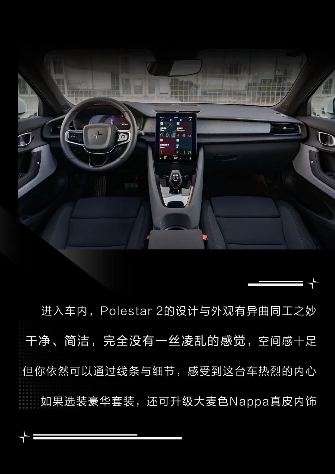 但是这台Polestar 2却给出了不同的“方案”,当一颗“热烈的心”隐藏在“冷淡”的外表之下,即使没有夸张的大尾翼与四出排气,也可以有运动风格的外表,低调却充满个性。